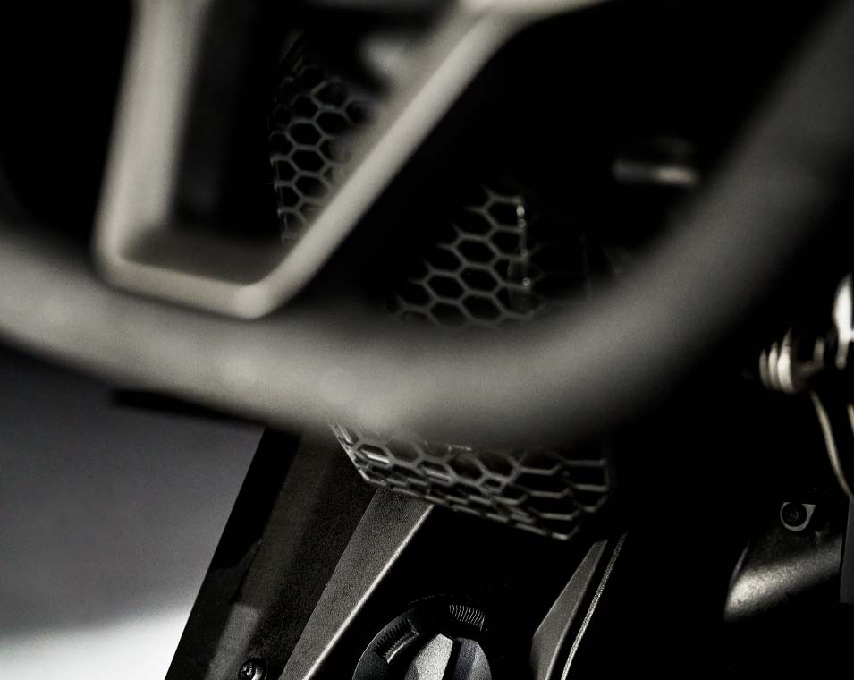 Show up and stand out: Das markante Design des RZR Pro R kombiniert Stil und Leistung, um jedes Abenteuer zu gewinnen.