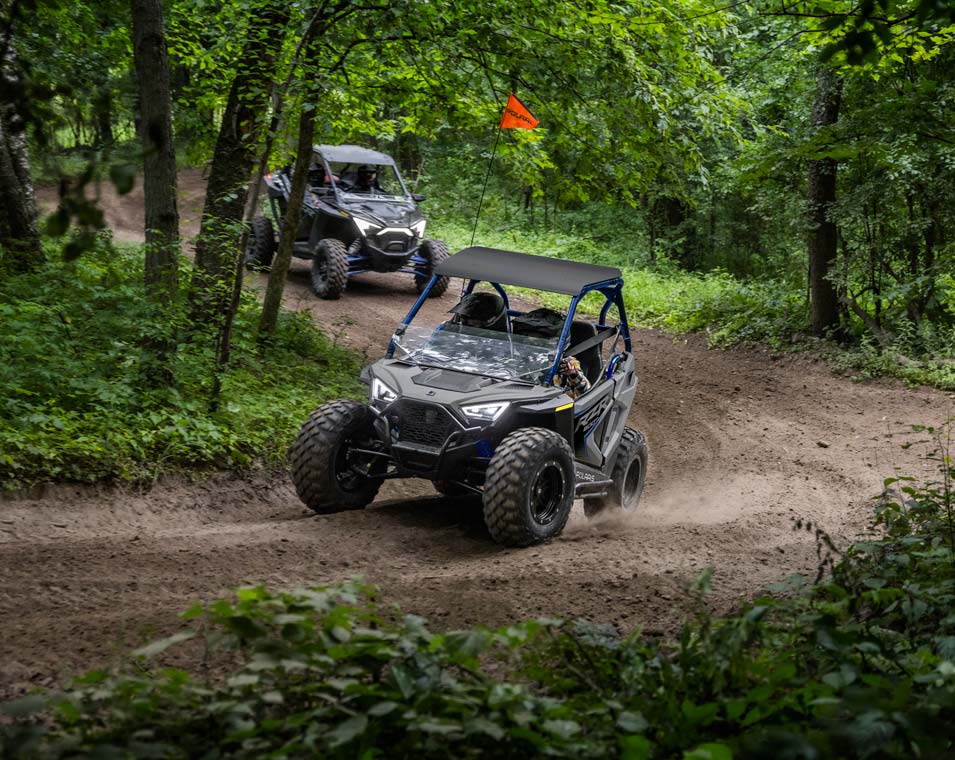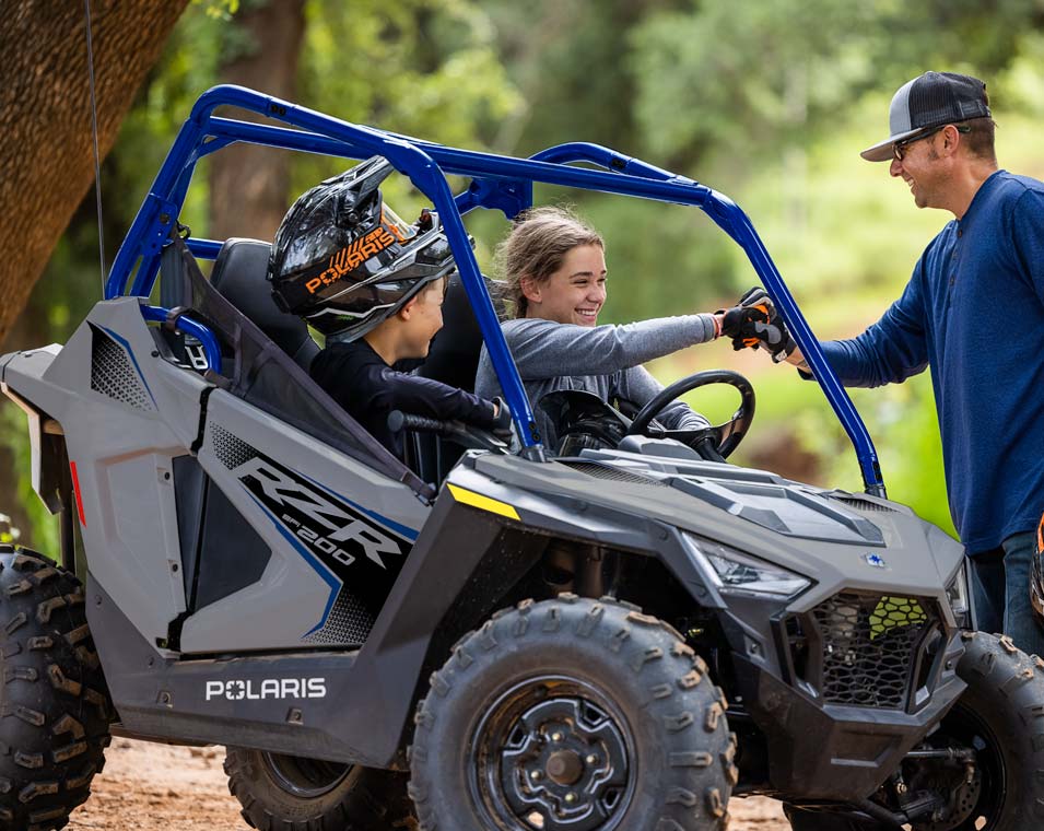 Mit dem 180-cm³-EFI-Motor, dem verstellbaren Sitz und Lenkrad, dem Beifahrersitz und dem Zubehör können jüngere Fahrer mit ihrem SxS mitwachsen. Hergestellt für Fahrer ab 10 Jahren.